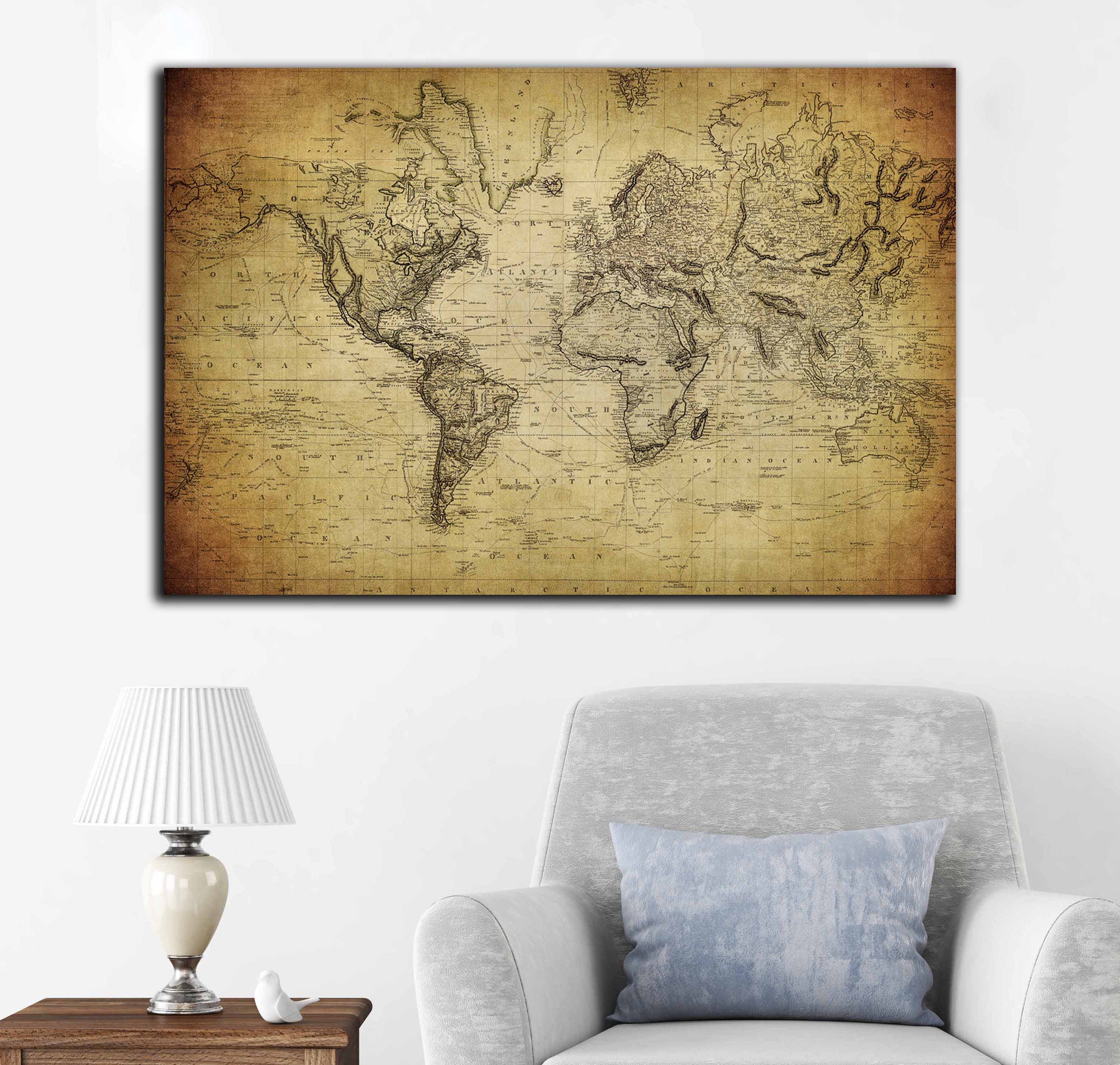 Personalized large world map or push pin map set of 3 canvas Check Out These Major Bargains: Rustic World Map Canvas Print, 3 Canvas Print World Map on Rustic Wood Wood Map Canvas Print Amazon.com: vintage world map canvas art print, Large wall Art